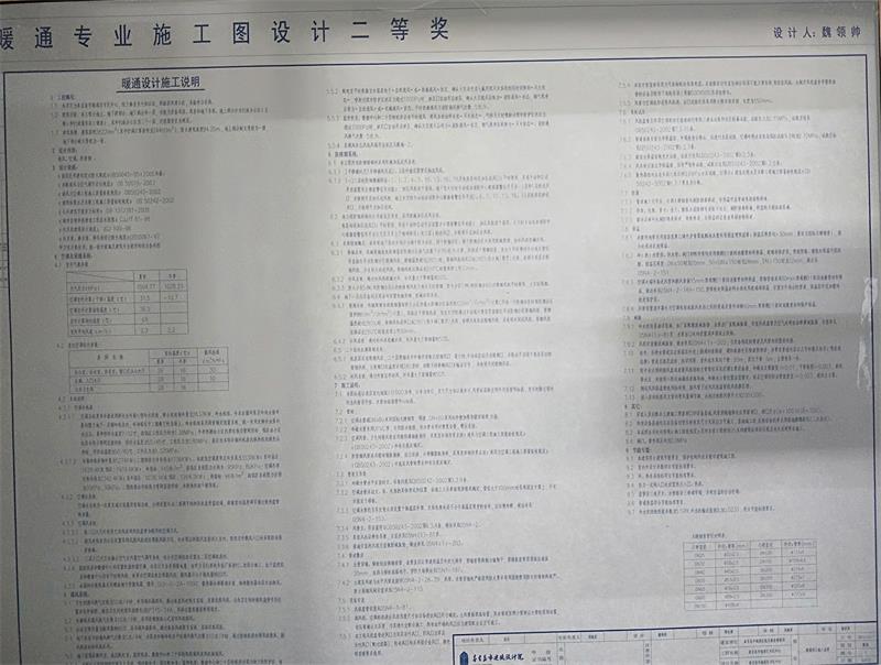 上圖為暖通專(zhuān)業(yè)二等獎(jiǎng)獲得者 魏領(lǐng)帥 參選施工圖